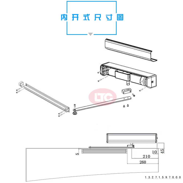 表面安裝式:? ........常見的類型,安裝在門扇上方(或側(cè)面)和門框上,類似于傳統(tǒng)閉門器。