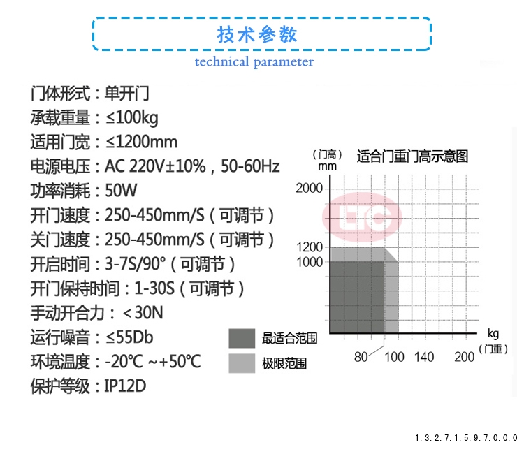 門尺寸與重量:? 必須選擇承重能力(牛頓或公斤力)?大于?實(shí)際門重和尺寸要求的型號(hào)。這是核心參數(shù)!
