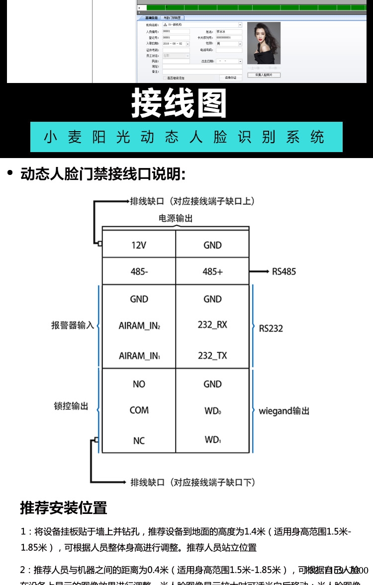 4.人臉容量為10000個(,人臉照片50000張,支持陌生人檢測、支持識別距離配置、支持UI界面配置、支持遠(yuǎn)程升級