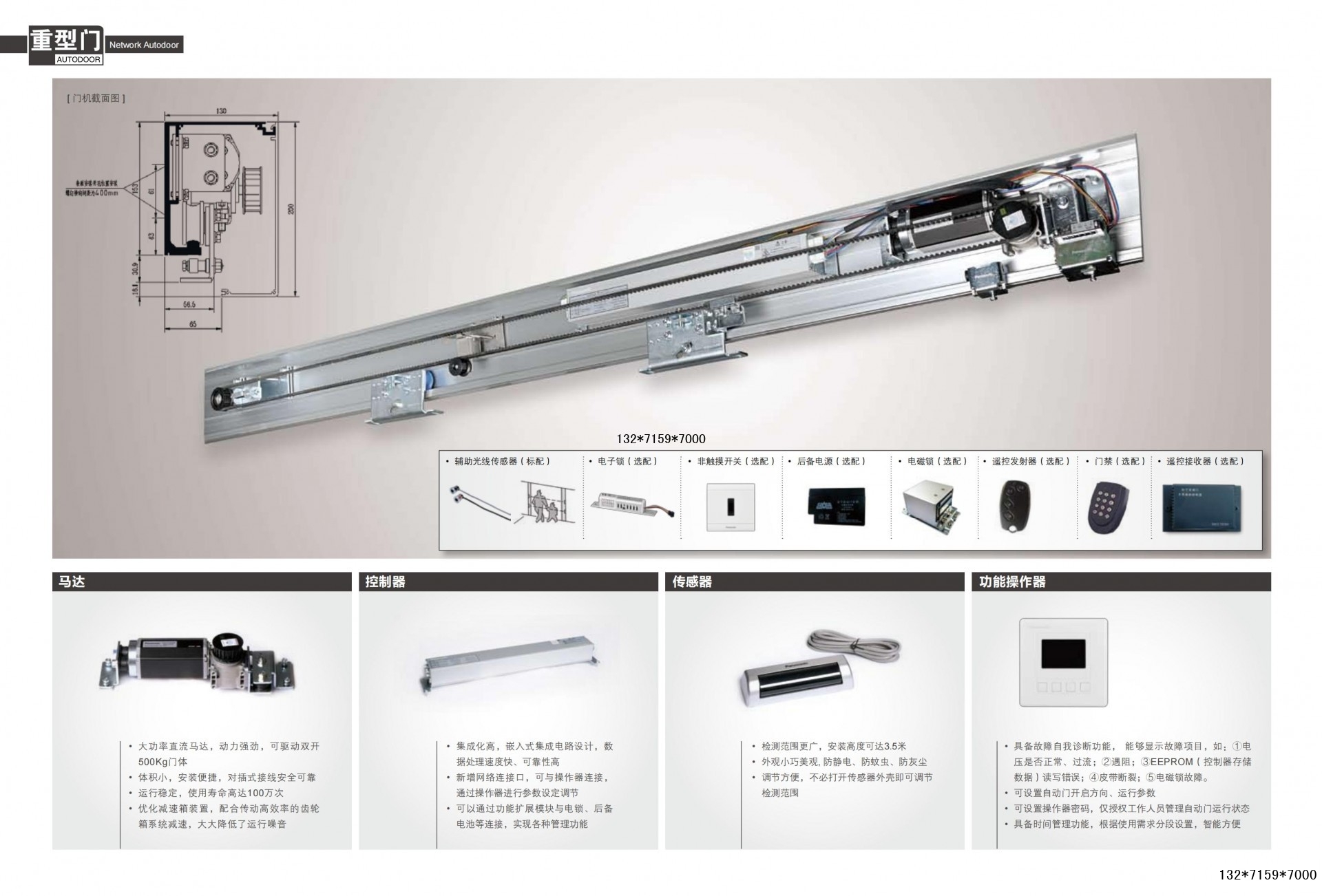 Panasonic重型電動(dòng)門電機(jī)功能特點(diǎn),承重大:最大門重:?jiǎn)紊?50kg,雙扇500kg