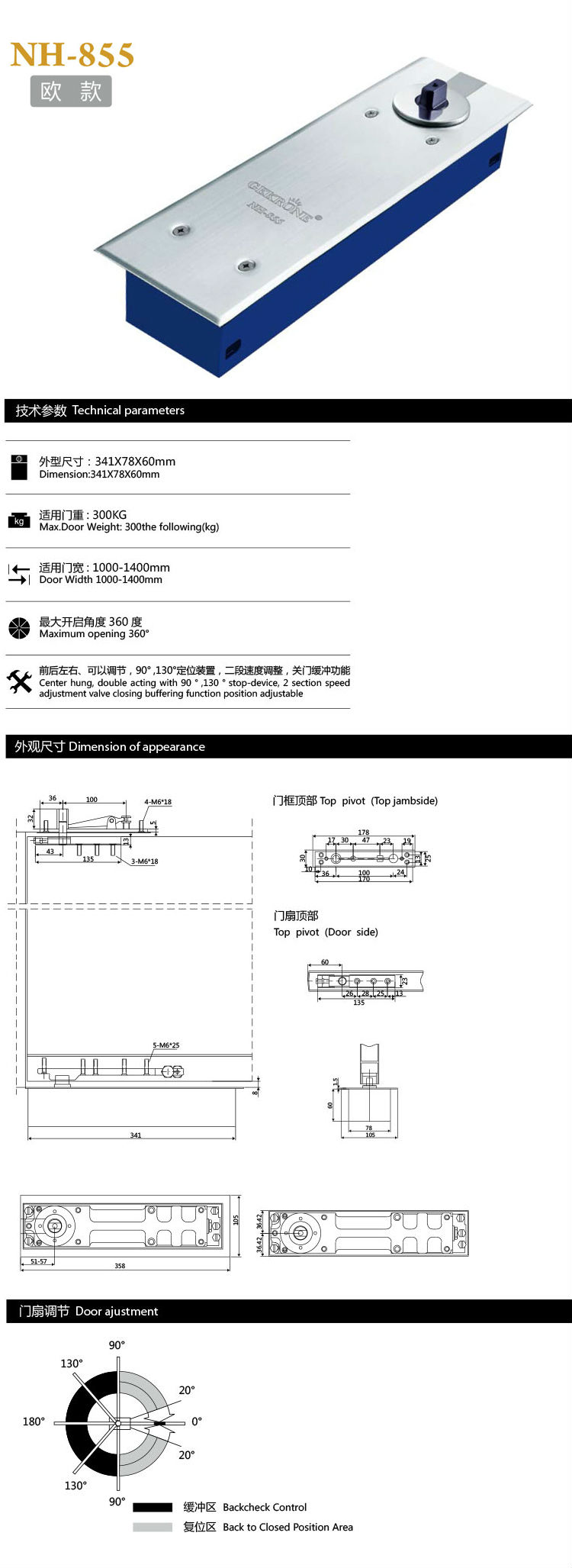 常見故障二,地彈簧開門角度的注意:要根據(jù)地彈簧產品說明書來控制開門角度。如果門在意外情況下開門時開啟角度超過規(guī)定的最大開啟角度,會導致地彈簧內部結構破壞。嚴重的會導致軸頭斷裂。