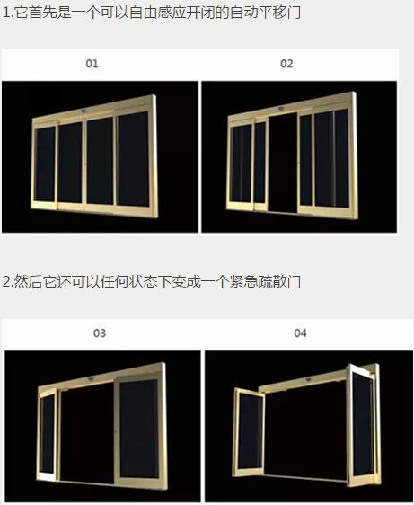 這是一款普通的平移門 ,普通自動平移門在斷電情況下,和一些緊急突發(fā)情況下,如果能無縫轉(zhuǎn)換成一個疏散門,那就最完美不過了。