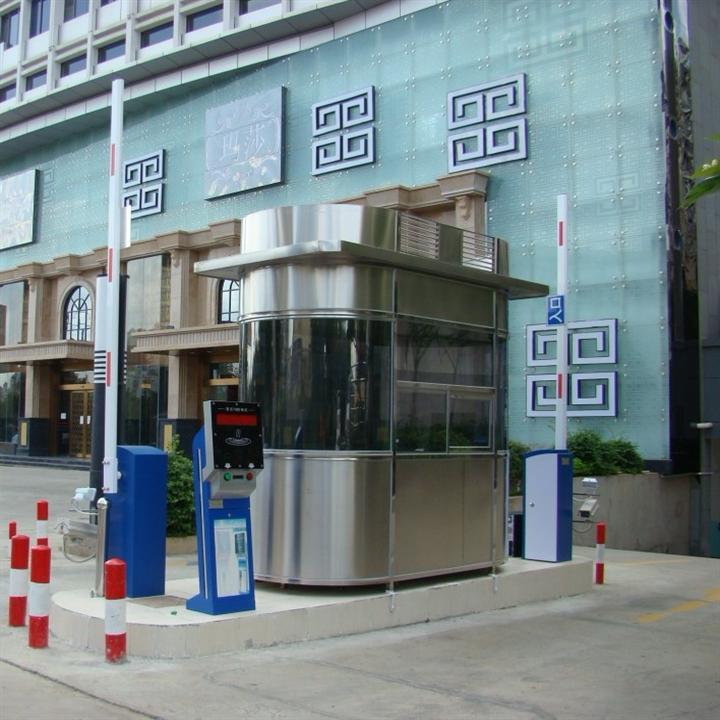 不銹鋼崗亭廠家 ⑴崗亭立柱采用不銹鋼∮140(1/4)圓柱;骨架為70*50不銹鋼板成形龍骨架; ⑵采用優(yōu)質不銹鋼板做為崗亭外裝飾板;內部采用3.0mm厚鋁塑板作為內裝飾板; ⑶崗亭地板采用百格式方鋼龍骨架上鋪18mm防水防潮模板面鋪3.0mm防滑鋁板; ⑷崗亭窗戶采用全不銹鋼推拉窗,玻璃為5mm厚透明玻璃;⑸崗亭內所有線路套管在崗亭夾層中隱藏; ⑹崗亭內標配不銹鋼辦公臺、開關、插座、日光燈盤;