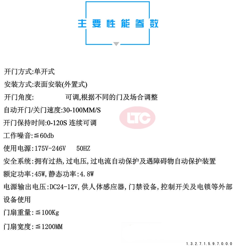 門尺寸與重量:? 必須選擇承重能力(牛頓或公斤力)?大于?實(shí)際門重和尺寸要求的型號(hào)。這是核心參數(shù)!